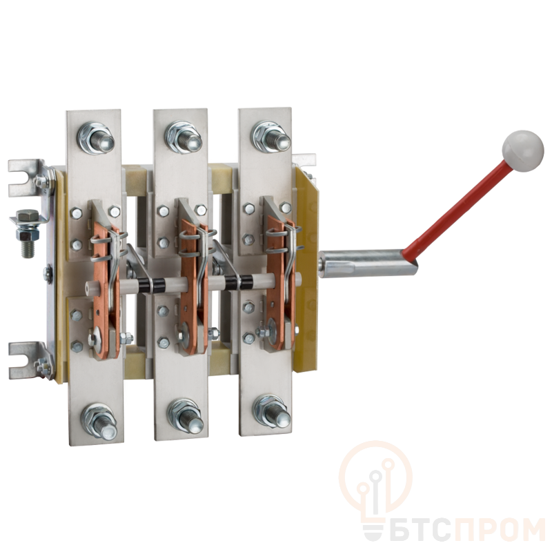 Выключатель-разъединитель 3 полюсный на номинальный ток 1000 А, где установлена съемная рукоятка, а механическая износостойкость составляет 6300 циклов.