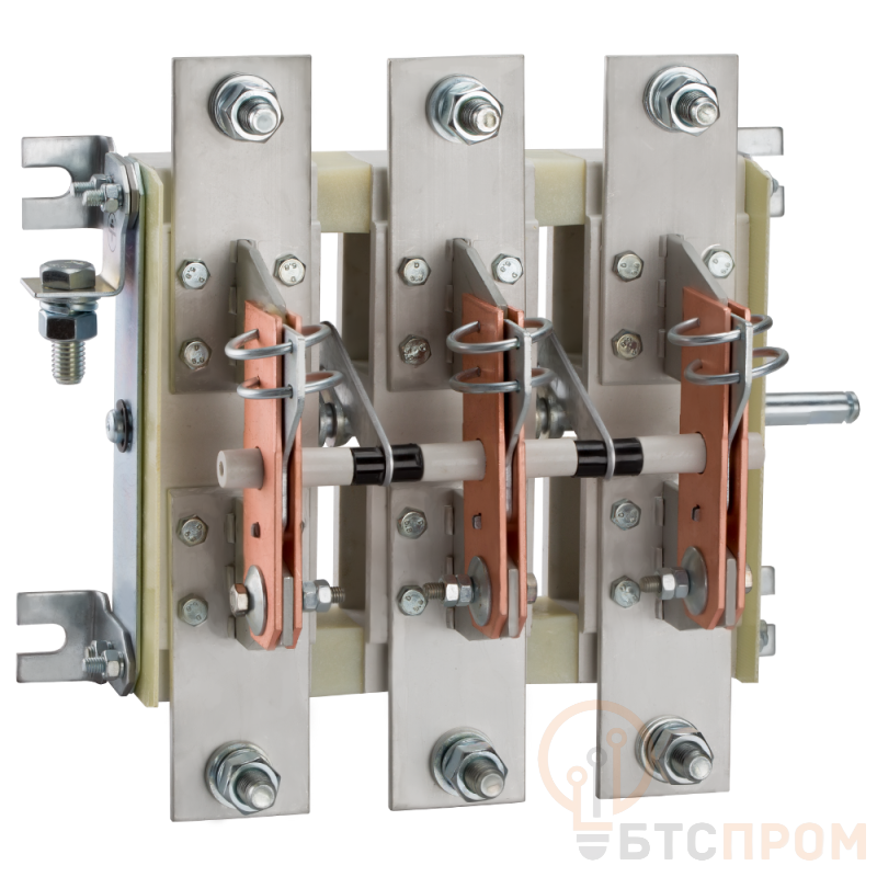 Выключатель-разъединитель 4 полюсный на номинальный ток 1600 А, где установлена несъемная рукоятка, а механическая износостойкость составляет 6300 циклов.