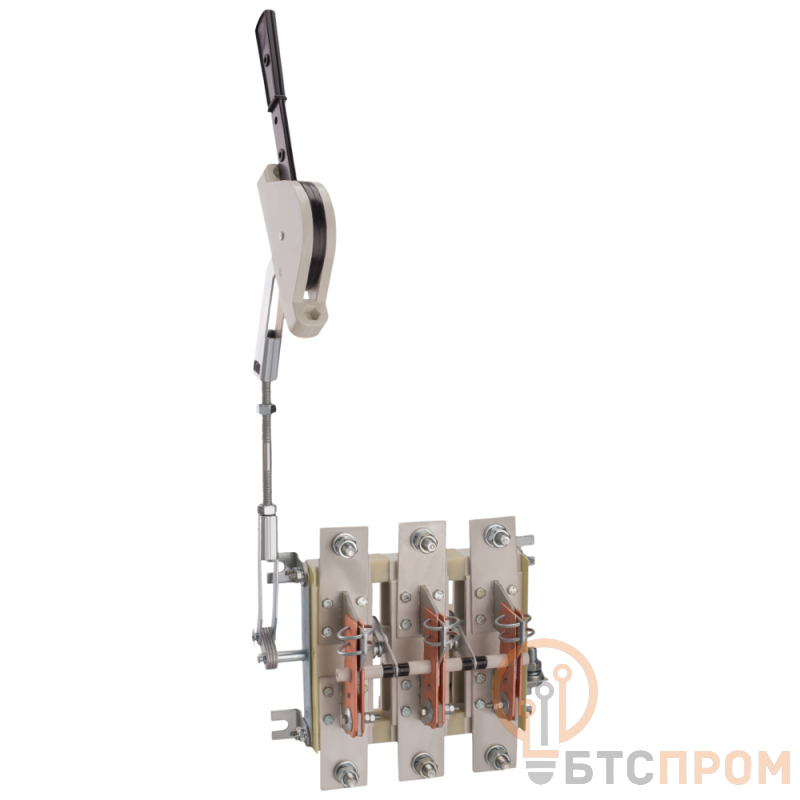 Разъединитель 3 полюсный на номинальный ток 1600 А, где установлена несъемная рукоятка, а механическая износостойкость составляет 6300 циклов.