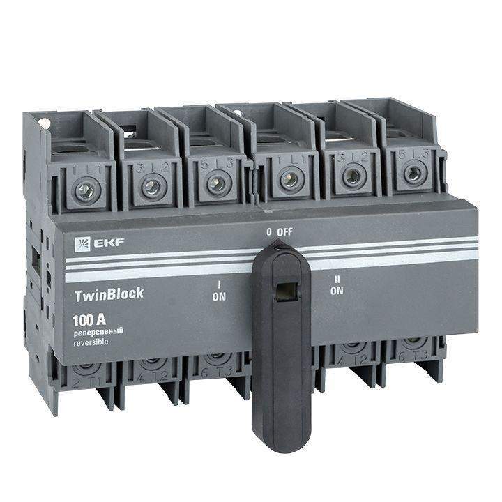 Рубильник 3п 100А реверсивный с рукояткой управления для прямой установки TwinBlock EKF tb-s-100-3p-rev