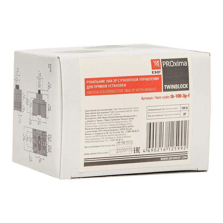 Рубильник 3п 100А с рукояткой управления для прямой установки TwinBlock PROxima EKF tb-100-3p-f фото в каталоге от BTSprom.by