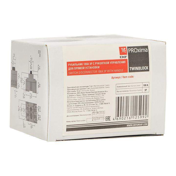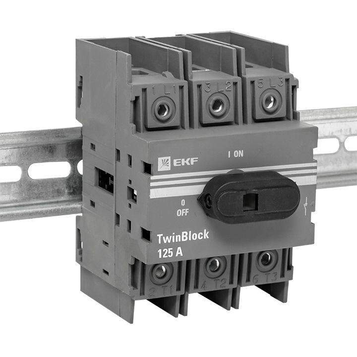 Рубильник 3п 125A c рукояткой управления для прямой установки TwinBlock EKF tb-125-3p-f фото в каталоге от BTSprom.by