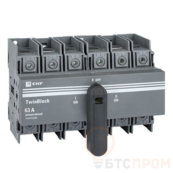 Рубильники серии TwinBlock предназначены для пропускания номинальных токов, включения и отключения электрических цепей номинальным напряжением до 690 В переменного тока частотой 50 и 60 Гц в устройствах распределения электрической энергии. Выключатели-разъединители серии TwinBlock (модели 40-800 А) имеют возможность подключения дополнительного четвертого полюса. Реверсивные рубильники серии TwinBlock предназначены для переключения нагрузки на резервную линию с разрывом питания (индикация положений на рубильнике I-0-II). Электрические характеристики реверсивных рубильников серии TwinBlock позволяют выполнять переключение под нагрузкой между двумя источниками питания, даже при токах с высокой индуктивной составляющей и пусковых токах двигателей.