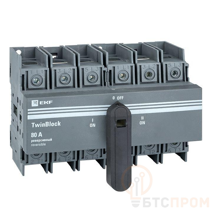 Рубильник 3п 80А реверсивный с рукояткой управления для прямой установки TwinBlock EKF tb-s-80-3p-rev