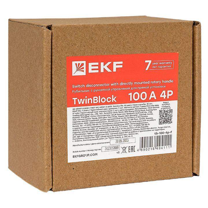 –Рубильник 4п 100А с рукояткой управления для прямой установки TwinBlock EKF tb-100-4p-f