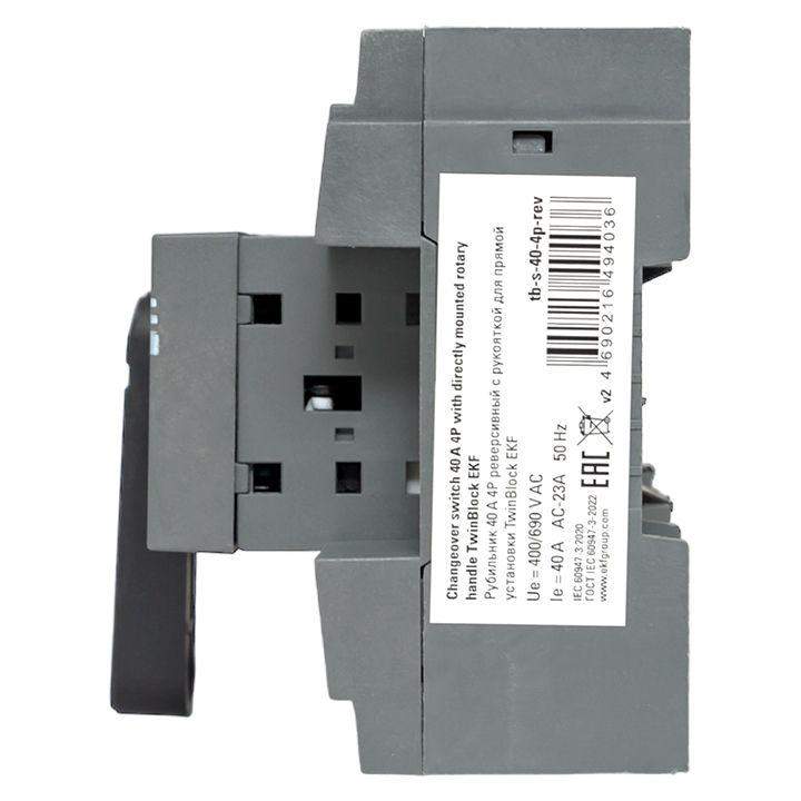 Рубильник 4п 40А реверсивный с рукояткой для прямой установки TwinBlock EKF tb-s-40-4p-rev фото в каталоге от BTSprom.by