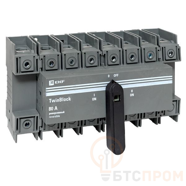Рубильник 80А 4п реверсивный с рукояткой для прямой установки TwinBlock EKF tb-s-80-4p-rev фото в каталоге от BTSprom.by