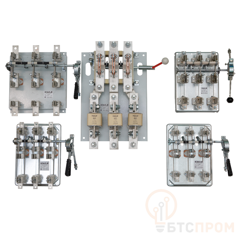 Разъединитель-предохранитель 3 полюсный на номинальный ток 400 А, номинальный условный ток короткого замыкания Iq 30 (кА), где установлена боковая смещенная рукоятка, а максимальное сечение присоединяемых медных шин составляет 480 кв. мм.