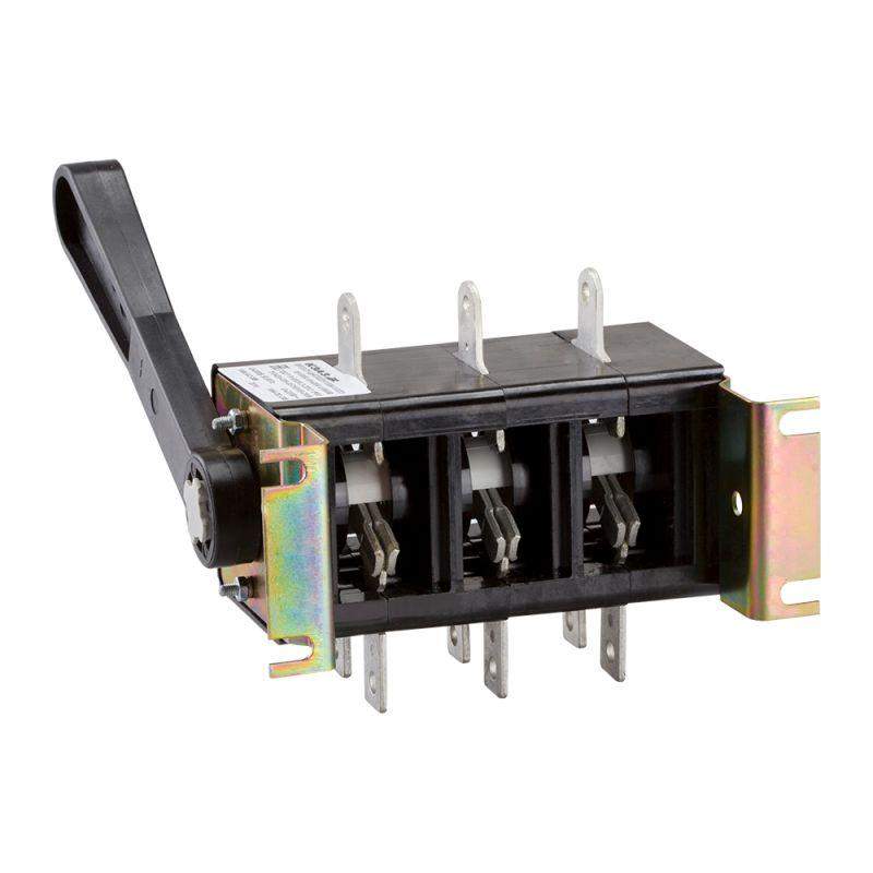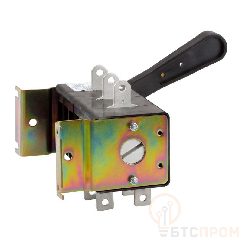 Выключатель-разъединитель 3 полюсный на номинальный ток 100 А, в котором установлена несъемная рукоятка.