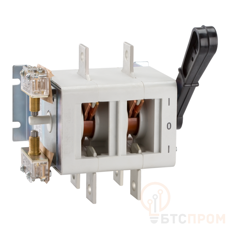 Выключатель-разъединитель 2 полюсный на номинальный ток 250 А, в котором установлена несъемная рукоятка.
