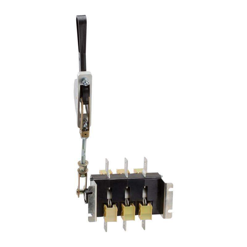 Выключатель-разъединитель 3 полюсный на номинальный ток 250 А, в котором установлена несъемная рукоятка.