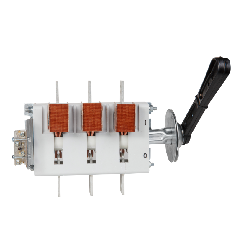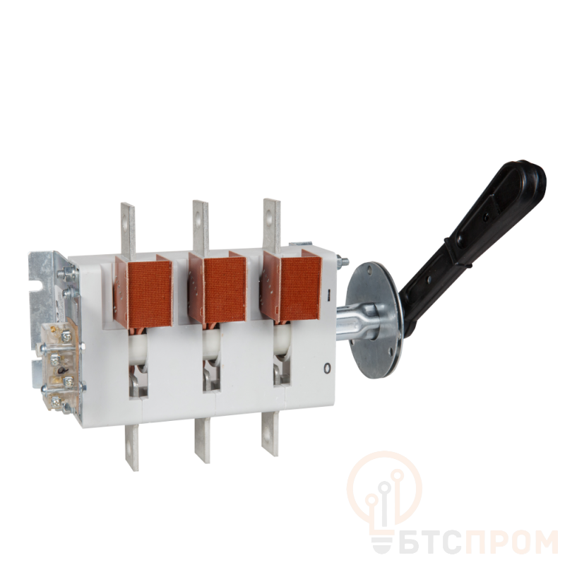 Выключатель-разъединитель 3 полюсный на номинальный ток 400 А, в котором установлена съемная рукоятка.