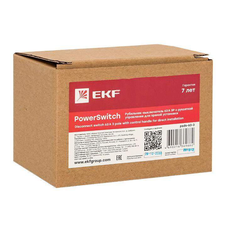 Рубильник-выключатель 3п 63А с рукояткой управления для прямой установки PowerSwitch PROxima EKF psds-63-3