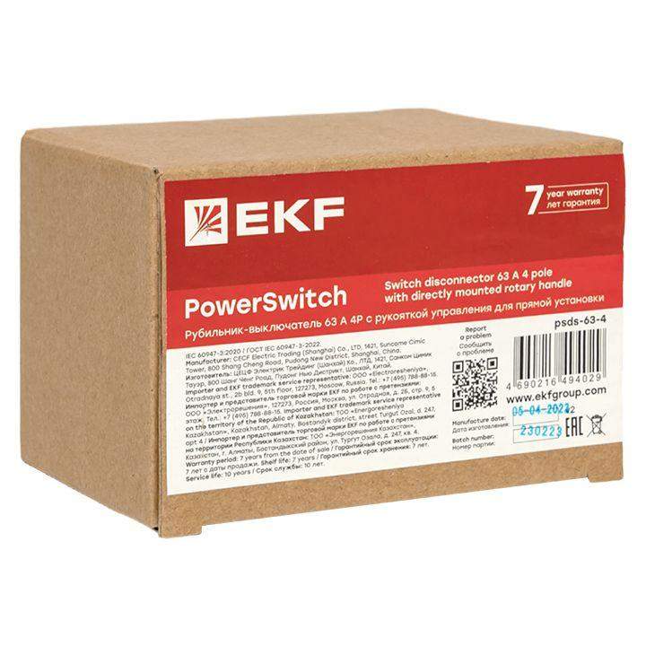 Рубильники-выключатели PowerSwitch 160 А – 3150 А EKF предназначены для работы в трёхфазных сетях переменного тока частотой 50 Гц с номинальным напряжением до 660 В в устройствах распределения электрической энергии для неавтоматических нечастых операций включения и отключения токов нагрузки в номинальном режиме. Механизм рубильника обеспечивает мгновенное (13,8 м/ с) размыкание контактов независимо от скорости перемещения рукоятки. Оболочка, изготовленная из ненасыщенной полиэфирной смолы, армированной стекловолокном, обладает превосходными характеристиками огнестойкости, диэлектрическими характеристиками, устойчивостью к углекислому газу, и ударопрочностью. Обеспечивает безопасную эксплуатацию изделия при применении по назначению. Рубильники-выключатели обеспечивают двойное размыкание на полюс. Все контактные материалы представляют собой медный сплав, покрытый серебром, и обладают двумя разделительными контактными поверхностями. Большой зазор изоляции. Рубильники-выключатели имеют возможность фиксации ручки во избежание ошибочного включения.