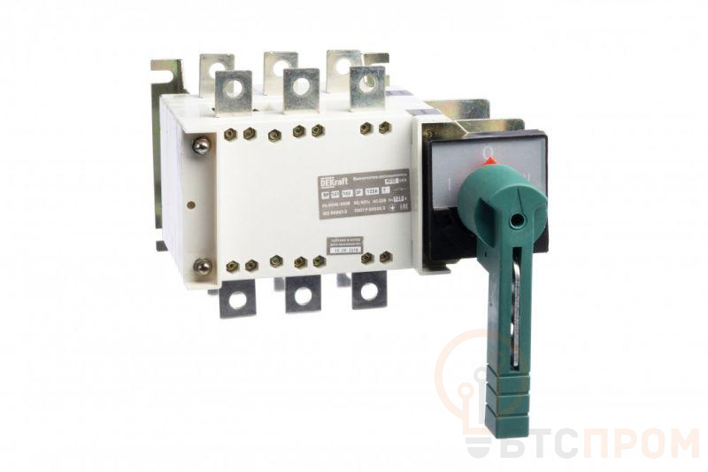 Выключатель-разъединитель серии ВР-101 Dekraft; 3P; реверсивный, тип Т (Тандем); номинальный ток 125 А; типоразмер 160; ном.напряжение до 690 В, 50 Гц; категория применения - АС-22В (смешанные активные и индуктивные нагрузки). Двойной разрыв контактов обеспечивает надежное гашение дуги и снижает риск повреждений. Подвод питания возможен как сверху, так и снизу аппарата. Медные клеммы обеспечивают высокую электрическую проводимость и удобство подключения проводников.