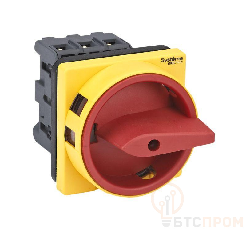 Выключатель-разъединитель 3п 25А IP20 с красн. рукоят. на дверцу 4 винтами с замком SE MSD25310R фото в каталоге от BTSprom.by