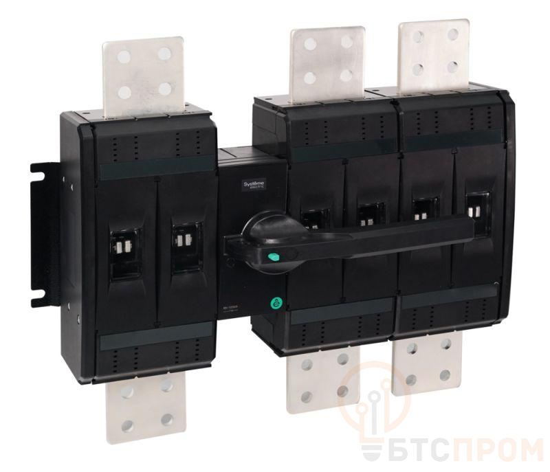 Выключатели-разъединители серии SystemePact SP SD на токи 1250А, 3P, рукоятка – фронтальная, установка – на монтажной плате. Аппараты SystemePact SP SD применяются в сетях низкого напряжения переменного и постоянного тока для частых ручных замыканий и размыканий электрических цепей в главных и промежуточных распределительных щитах, щитах местного секционирования на промышленных предприятиях. Возможна установка дополнительных контактов и блокировка рукоятки навесным замком.