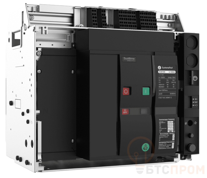 Воздушный выключатель-разъединитель серии SystemePact ACB SD предназначен для применения в сетях низкого напряжения до 690 В (AC). Аппарат применяется для рабочих включений и отключений нагрузки. Номинальные характеристики: Un (AC) = 400 В/690 В, In = 1000 А, 4P, Icw (AC-400 В) = 42 кА, Icw (AC-690 В) = 35 кА, Icm (AC-400 В) = 88 кА, Icm (AC-690 В) = 73 кА, исполнение - выкатное, присоединение - заднее горизонтальное, встроенные (AC-230 В): мотор привод МСН, катушка включения XF, независимый расцепитель MX, контакт готовности к включению PF (1 шт.), контакты положения аппарата в корзине: вкачен/выкачен/тест (по 1 шт.). Количество вспомогательных контактов состояния - 4 шт. Габаритный размер: ACB-1. ВxШxГ НЕТТО (см): 32,2х35,8х27,7. ВxШxГ БРУТТО (см): 38х43х45. Вес НЕТТО: 36 кг. Вес БРУТТО: 43 кг.