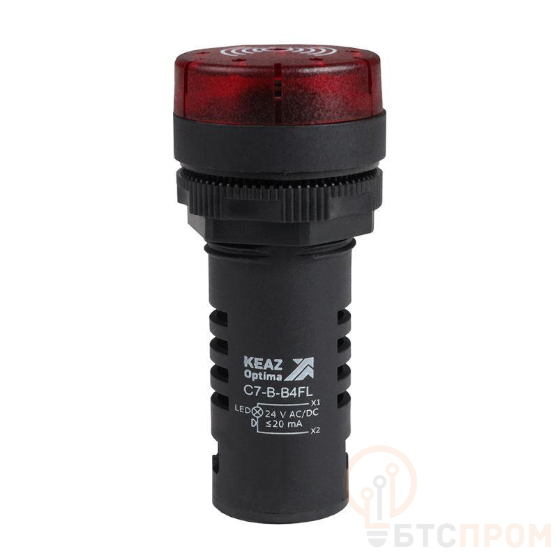 Зуммер с пульсирующим сигналом OptiSignal Compact D22 С7-B-B4FL от КЭАЗ — это современное и эффективное устройство для подачи светозвуковых сигналов в различных системах оповещения. Модель оснащена яркой красной светодиодной подсветкой, которая работает в пульсирующем режиме, значительно усиливая визуальное восприятие сигнала.