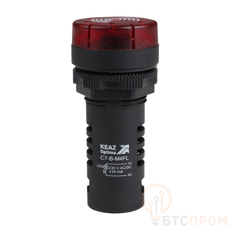 Зуммер с пульсирующим сигналом OptiSignal Compact D22 С7-B-M4FL красн. с подсветкой 230В AC/DC КЭАЗ 362174