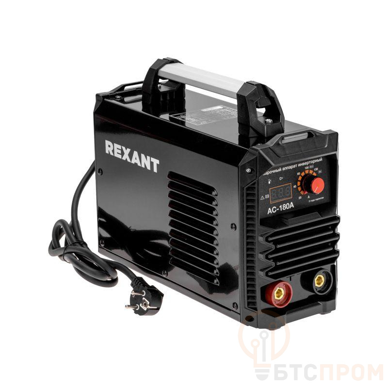 Инверторный сварочный аппарат REXANT АС-180А представляет собой компактный, надежный и удобный прибор для сварки MMA. Подходит для бытового и профессионального применения - для работы на строительных объектах, в гараже, в мастерской. Аппарат работает от сети 220 В. Данная модель имеет компактный корпус. Характеристики: Напряжение питающей сети: 220 +- 15% Частота питающей сети: 50-60 Гц Потребляемая энергия: 4,5 кВт Сварочный ток MMA: 20-180 А Рабочее напряжение ММА: 21,2-26,4 Напряжение холостого хода MMA: 60 В Потребление без нагрузки: 20 Вт Рабочий цикл: 60% Коэффициент мощности: 73% КПД: 85% Класс изоляции: F Класс защиты: IP 21S Масса, кг: 3,5 Функция поджига повышенным током (Антиприлипание) ДА Функция форсирования силы дуги (Горячий старт) ДА Защита от перепадов напряжения ДА Комплектация: Инверторный сварочный аппарат - 1 шт. Кабель длиной 1,8 метра с электрододержателем - 1 шт. Кабель длиной 1,2 метра с зажимом массы - 1 шт. Инструкция по эксплуатации -1 шт. Преимущества: Отсутствие брызг при сварке. Антиприлипание электродов. Плавная регулировка сварочного тока. Легкий старт (легкий поджиг дуги) Поддерживает обратную и прямую полярность при сварке. Работает с элекродами 2-4 мм