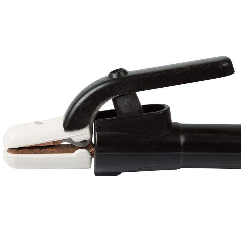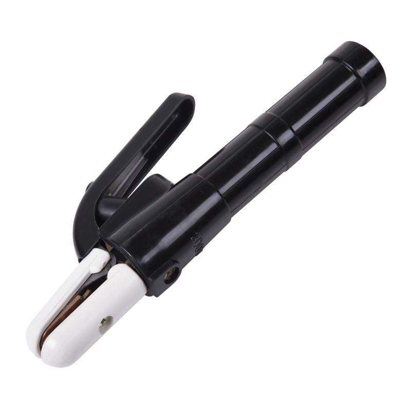 Держатель электрода REXANT 300 А предназначен для фиксации электрода при проведении ручной сварки. Прочный и универсальный в применении инструмент гарантирует жесткую фиксацию широкого диапазона используемых габаритов электродов и сварочного кабеля. Производителем предусмотрена надежная фиксация электрода в четырех положениях благодаря рельефу зажимной пластины. Удобная ручка надежно изолирована пластиковым материалом, который выдерживает высокие механические и технические нагрузки. Габаритные размеры: 230x35x35 мм Диаметр применяемых электродов: 2,0-6,0 мм Масса: 0.26 кг Наибольший сварочный ток при ПВ=35%: 300 А Номинальный сварочный ток: 300 А Продолжительность цикла сварки: 5 мин Сечение жилы подсоединяемого сварочного кабеля: до 50 мм2 Угол закрепления электрода без подгиба, с подгибом: 0...270° Усилие прижатия электрода: 12.5-25 кгс Напряжение: до 50 В