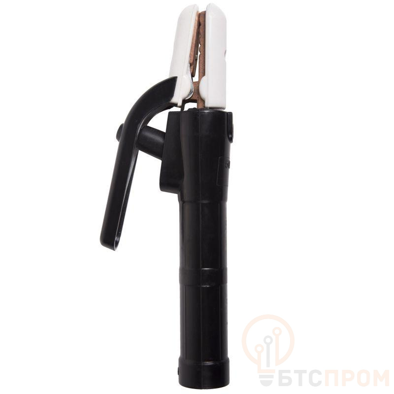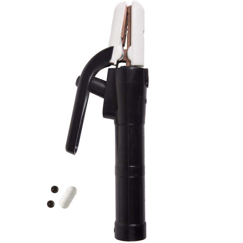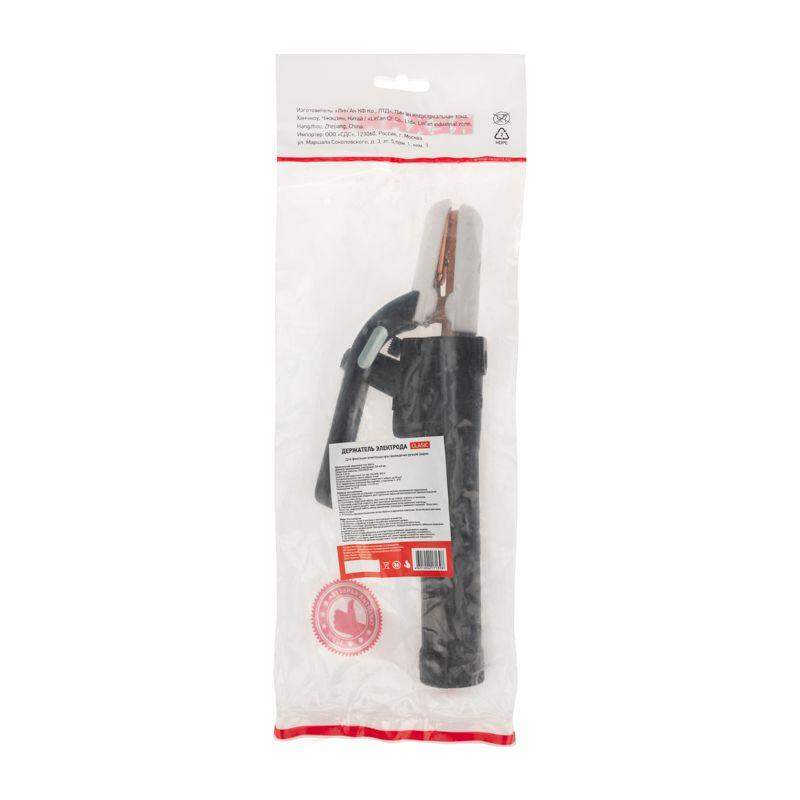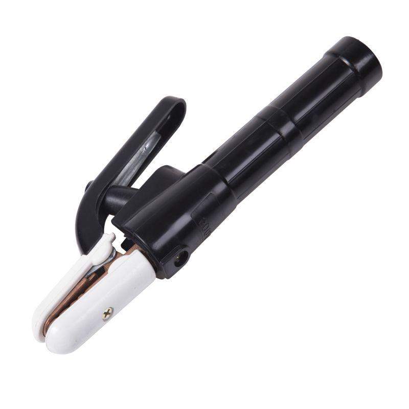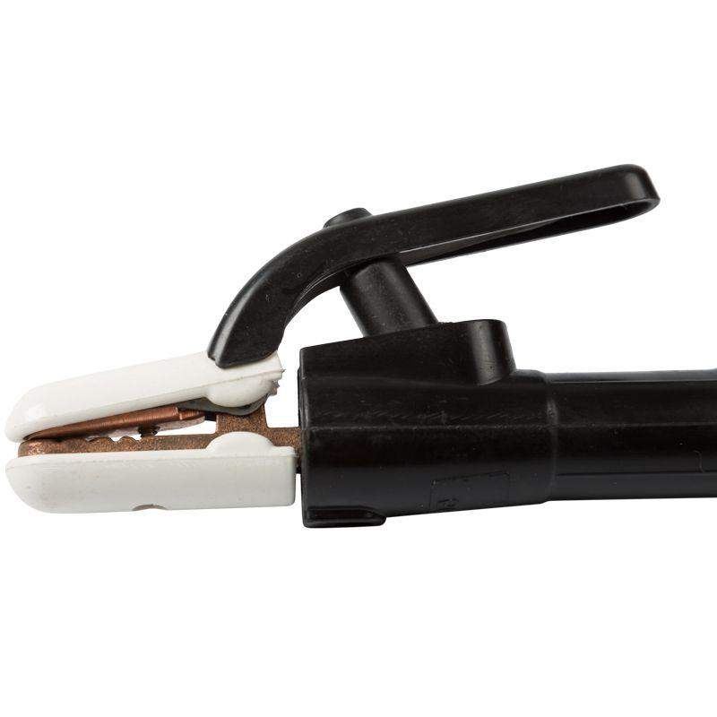 Держатель электрода REXANT 500 А предназначен для фиксации электрода при проведении ручной сварки. Прочный и универсальный в применении инструмент гарантирует жесткую фиксацию широкого диапазона используемых габаритов электродов и сварочного кабеля. Производителем предусмотрена надежная фиксация электрода в четырех положениях благодаря рельефу зажимной пластины. Удобная ручка надежно изолирована пластиковым материалом, который выдерживает высокие механические и технические нагрузки. Габаритные размеры: 230x35x35 мм Диаметр применяемых электродов: 3,0-10,0 мм Масса: 0.26 кг Наибольший сварочный ток при ПВ=35%: 500 А Номинальный сварочный ток: 500 А Продолжительность цикла сварки: 5 мин Сечение жилы подсоединяемого сварочного кабеля: до 50 мм2 Угол закрепления электрода без подгиба, с подгибом: 0...270° Усилие прижатия электрода: 12.5-25 кгс Напряжение: до 50 В