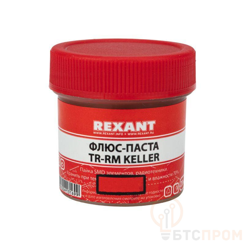 Флюс-паста TR-RM представляет собой пасту от темно-желтого до светло-желтого цвета. Не содержит ни одного активатора, кроме канифоли. Является полностью гидрофобным материалом, благодаря чему не подвергается воздействию коррозии. Изготовлена в соответствии с ТУ 20.52.10-003-2136293-2018. Не содержит механических примесей и спиртов. Обладает сниженным температурным режимом пайки. При необходимости остатки флюса TR-RM можно удалить уайт-спиритом. Флюс TR-RM позволяет паять, не нанося дополнительного количества припоя, а использовать то, что есть на деталях. Основные компоненты: канифоль и технический вазелин. Вариант фасовки – банка объемом 20 мл.