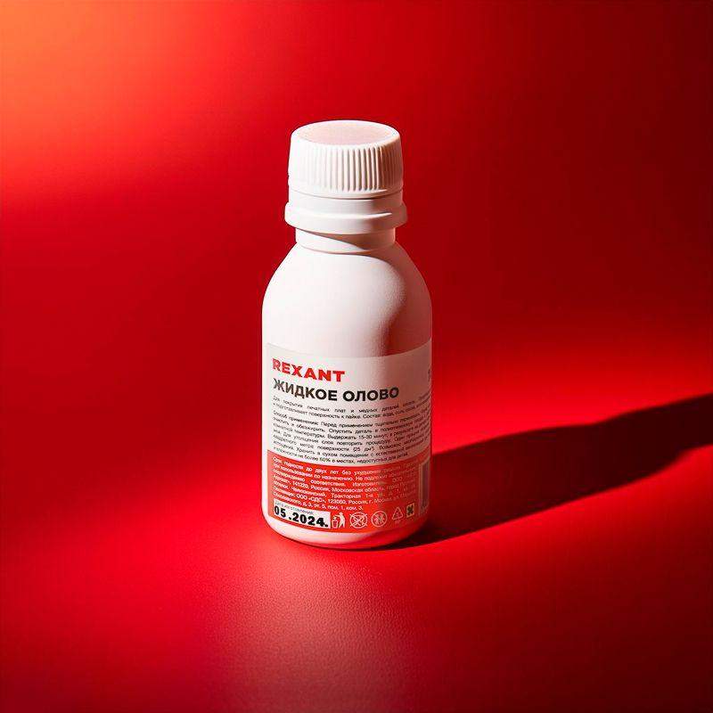 Жидкое олово (химическое лужение плат) 100 мл REXANT предназначено для покрытия печатных плат и медных деталей оловом. В результате химического лужения поверхностей и деталей предотвращается окисление меди и поверхность готова к пайке. Способ применения: Перед началом лужения деталь очистить и обезжирить. Опустить деталь в полиэтиленовую посуду с раствором жидкого олова комнатной температуры. Выдержать 15-30 минут, в результате получим на детали слой олова в 1 мкм. Для утолщения слоя повторить процедуру. Один пузырек позволяет покрыть оловом 1/4 квадратного метра поверхности (25 дм2). Раствор можно использовать сколько угодно раз до полного истощения.