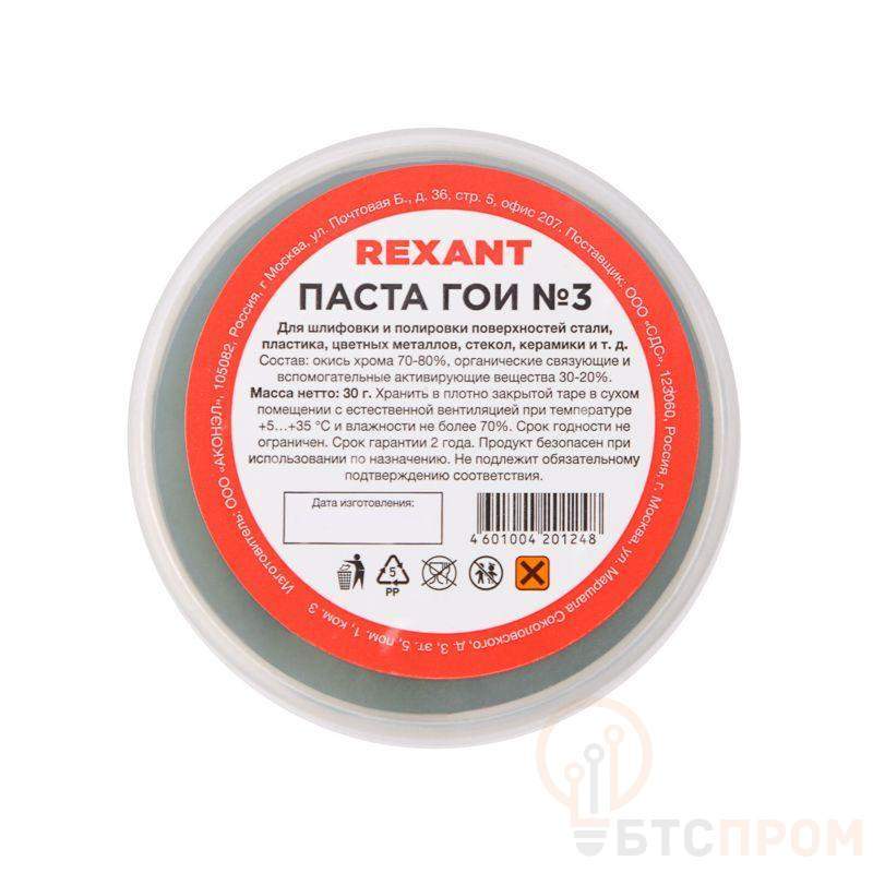 Паста ГОИ № 3 (аббревиатура от Государственный Оптический Институт) – это абразивный материал, применяемый для шлифовки и полировки поверхностей стали, пластика, цветных металлов, стекол, керамики и т. д. Основными компонентами являются оксид хрома, различные связующие и другие дополнительные компоненты. Широкое применение паста ГОИ получила благодаря простоте применения, возможности в домашних условиях производить шлифовку и полировку поверхностей. Подбор полировальной пасты: ВНИМАНИЕ! Важно правильно подобрать пасту с соответствующим уровнем абразивности. Использование по ошибке крупных частиц и (или) чрезмерного усилия, может привести к повреждению поверхности. В зависимости от абразивных качеств паста подразделяется на следующие типы: ПАСТА № 1 («тонкая» или «финишная»). Имеет почти черный цвет с зеленоватым отливом и абразивность 0.3-0.1 мкм. Содержание оксида хрома от 65 до 75%. Применяется для чистовой, зеркальной полировки. ПАСТА № 2 («тонкая»). Материал темно-зеленого цвета, имеющий абразивность 7.0-1.0 мкм. Содержание оксида хрома от 65 до 77%. Применяется для тонкой доводки поверхности с приданием зеркального блеска. ПАСТА № 3 («средняя»). Имеет зеленый цвет и абразивность 17.0-8.0 мкм. Содержание оксида хрома от 70 до 80%. Применяется для создания чистой поверхности и получения равномерного блеска. ПАСТА № 4 («грубая»). Материал светло-зеленого цвета, имеющий абразивность 40.0-18.0 мкм. Содержание абразива от 75 до 85%. Используется для получения матовой поверхности и удаления мелких царапин. Технические характеристики: Внешний вид: твердая масса зеленого цвета Состав: окись хрома 70-80%, органические связующие и вспомогательные активирующие вещества 30-20% Масса нетто: 30 г РЕКОМЕНДУЕМЫЙ ПОРЯДОК РАБОТ 1. Нанести небольшое количество пасты на полировальный круг, фланелевую ветошь, либо другой аналогичный мягкий материал. Не следует наносить пасту непосредственно на обрабатываемую поверхность. 2. В некоторых случаях, для растворения пасты, допустимо предварительно смочить круг или ветошь керосином или бензином. 3. Для равномерного распределения, разотрите нанесенную на ветошь или круг пасту о металл. Это необходимо для удаления крупных кусков абразивного материала способного повредить поверхность. 4. Добавьте небольшое количество индустриального масла на обрабатываемую поверхность. 5. Можно начинать полировку, периодически добавляя пасту. В процессе работы не следует делать резких движений или прикладывать большие усилия, это может привести к появлению царапин. Производите полировку до получения необходимого блеска. 6. После завершения промойте поверхность керосином или, удалите остатки абразива водой. МЕРЫ ПРЕДОСТОРОЖНОСТИ Хранить в местах, недоступных для детей. Паста REXANT соответствует ТУ 6-18-36-85.