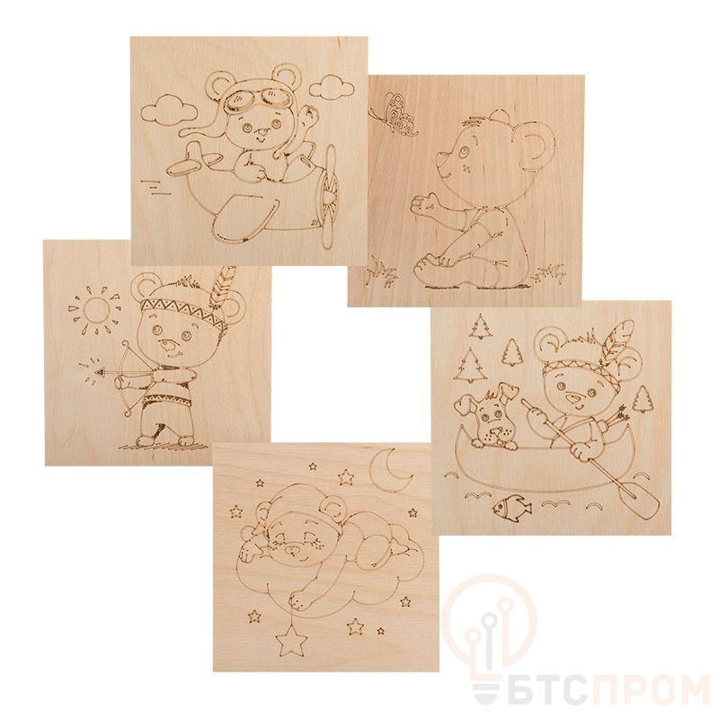 Набор досок для выжигания "Мишки" 150х150мм пакет (уп.5шт) Rexant 12-0931 фото в каталоге от BTSprom.by