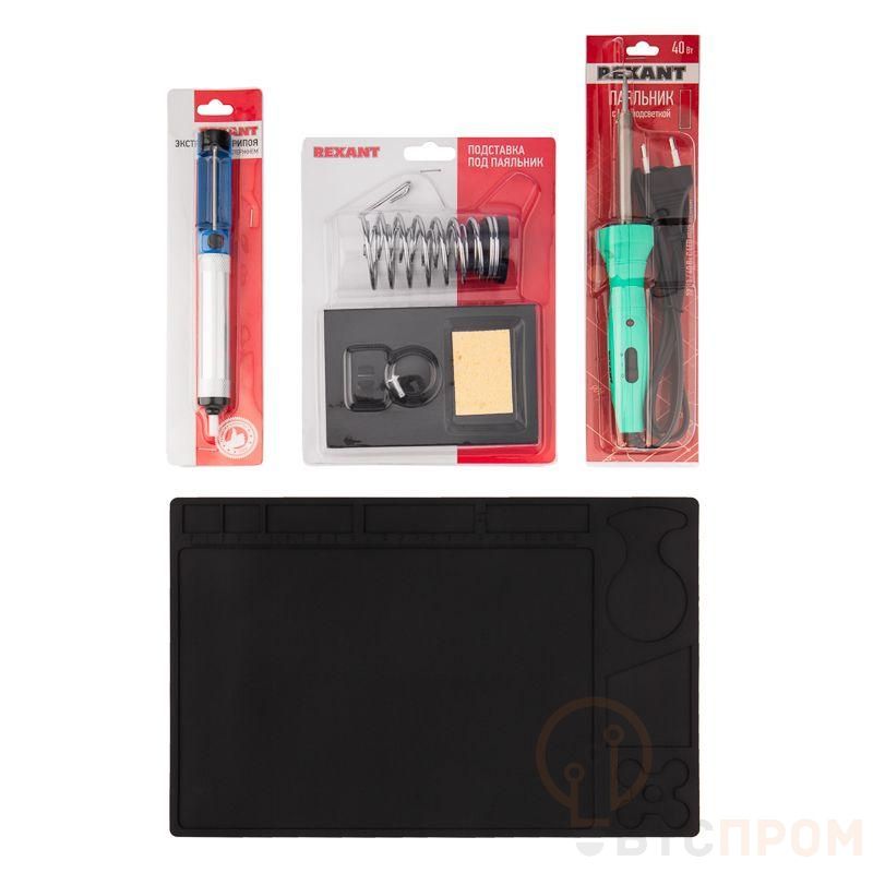 Набор К20 для пайки продвинутый (паяльник с подсветкой подставка экстрактор коврик) Rexant 09-3760 фото в каталоге от BTSprom.by