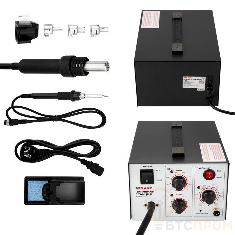 Универсальная паяльная станция (R852) 2 в 1 с компрессорным феном и паяльником предназначена для демонтажа или пайки различных видов компонентов, таких как SOIC, PLCC, QFP, BGA и т. д. Прибор оснащен ручным регулятором рабочей температуры жала паяльника, фена и воздушного потока с аналоговой шкалой. Широкий диапазон рабочих температур позволяет применять паяльную станцию для работ различной сложности и в любых условиях. Устройство разогревается быстро и равномерно, а после выключения автоматически охлаждается. В комплектацию станции входят: основной блок, термофен, паяльник, держатель паяльника, держатель термофена, губка для очистки жала паяльника (в ложементе), 4 насадки для термофена разного размера (3мм, 5мм, 8мм, 10мм).