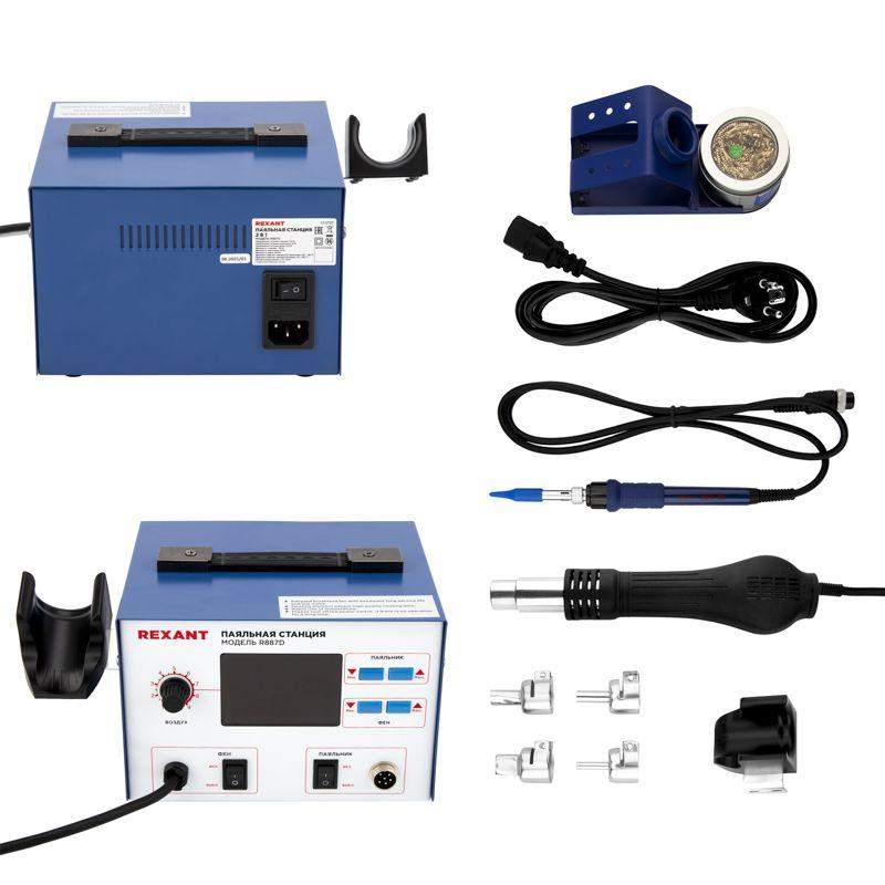 Универсальная цифровая паяльная станция 2 в 1 с компрессорным феном и паяльником (R852AD+) применяется для демонтажа или пайки различных видов компонентов, таких как SOIC, PLCC, QFP, BGA и т. д. Микрокомпьютер для цифрового отображения данных и контроля температуры с точностью до 1 °C, быстрый и равномерный разогрев, регулировка интенсивности обдува – все эти преимущества обеспечивают легкость и комфорт в процессе работы. В комплектацию станции входят: основной блок, термофен, паяльник, держатель паяльника, держатель термофена, губка для очистки жала паяльника (в ложементе), 4 насадки для термофена 5, 8, 10 и 13 мм.