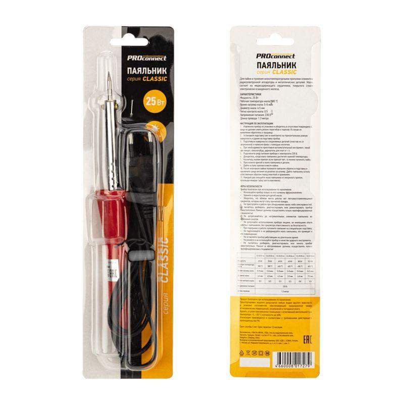 Паяльник серия Classic мощностью 25Вт PROconnect предназначен для ручного монтажа/демонтажа электронных компонентов и других мелких деталей. Подходит как для любительского, так и для профессионального использования. Долговечное жало паяльника состоит из медьсодержащего сердечника, покрытого слоем хрома. В случае необходимости его можно легко и быстро заменить (сменное жало в комплект не входит). Паяльник оснащен эргономичной, ударопрочной и термостойкой рукояткой, которая сделает работу с инструментом легкой и приятной.