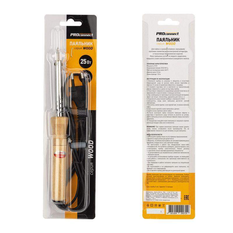Паяльник с деревянной ручкой серии WOOD мощностью 25Вт REXANT предназначен для ручного монтажа/демонтажа электронных компонентов и других мелких деталей. Подходит как для любительского, так и для профессионального использования. Долговечное жало паяльника состоит из медьсодержащего сердечника, покрытого слоем хрома. В случае необходимости его можно легко и быстро заменить (сменное жало в комплект не входит). Удобная эргономичная рукоятка выполнена из экологически чистого материала - дерева, что сделает работу с инструментом легкой и приятной.