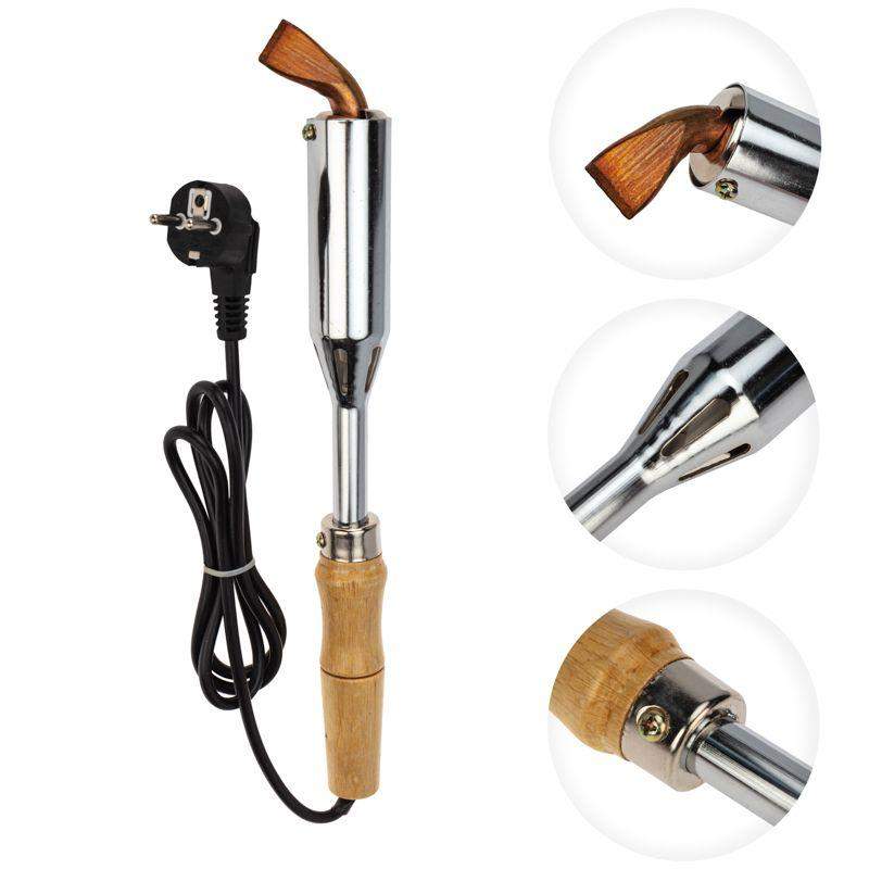 Паяльник высокомощный серии ЭПСН, мощностью 300Вт REXANT предназначен для ручной пайки металлических изделий или листов средней толщины, а также для лужения проводов или кабельных наконечников. Подходит как для любительского, так и для профессионального использования. Нагреватель имеет керамическую трубку, что обеспечивает быстрый прогрев жала, увеличивает энергоэффективность паяльника и продлевает его срок службы. Медное жало выполнено в форме клина (лопатки) с загнутым окончанием, в случае необходимости его можно легко и быстро заменить. Сменное жало в комплект не входит. Удобная эргономичная рукоятка выполнена из экологически чистого материала - дерева, что сделает работу с инструментом легкой и приятной.