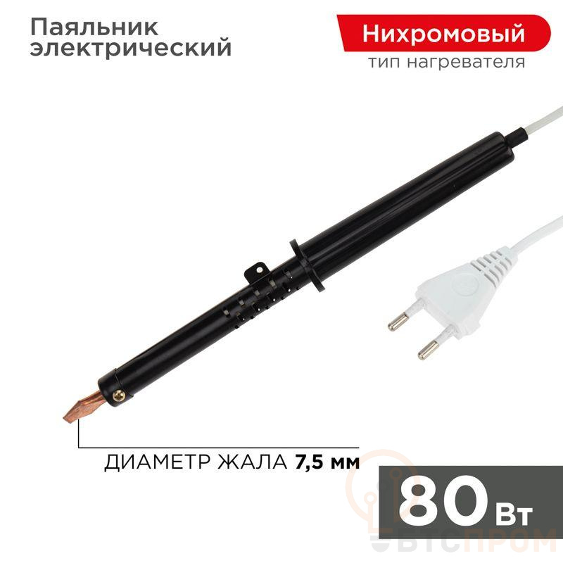 Паяльник с пластиковой ручкой серии ЭПСН мощностью 80Вт REXANT предназначен для ручного монтажа/демонтажа деталей среднего размера и лужения. Подходит как для любительского, так и для профессионального использования. Медное жало выполнено в форме клина (лопатки), в случае необходимости его можно легко и быстро заменить. Удобная рукоятка выполнена из термостойкого пластика.