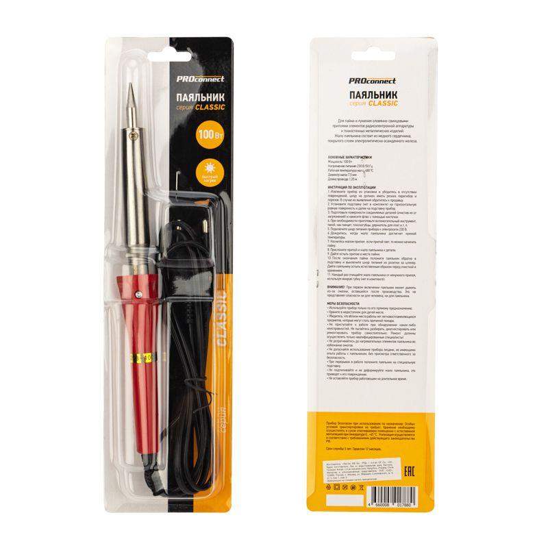 Паяльник серии Classic мощностью 100Вт PROconnect предназначен для ручного монтажа/демонтажа деталей среднего и крупного размера, а также для лужения. Подходит как для любительского, так и для профессионального использования. Долговечное жало паяльника состоит из медьсодержащего сердечника, покрытого слоем хрома. В случае необходимости его можно легко и быстро заменить (сменное жало в комплект не входит). Паяльник оснащен эргономичной, ударопрочной и термостойкой рукояткой, которая сделает работу с инструментом легкой и приятной.