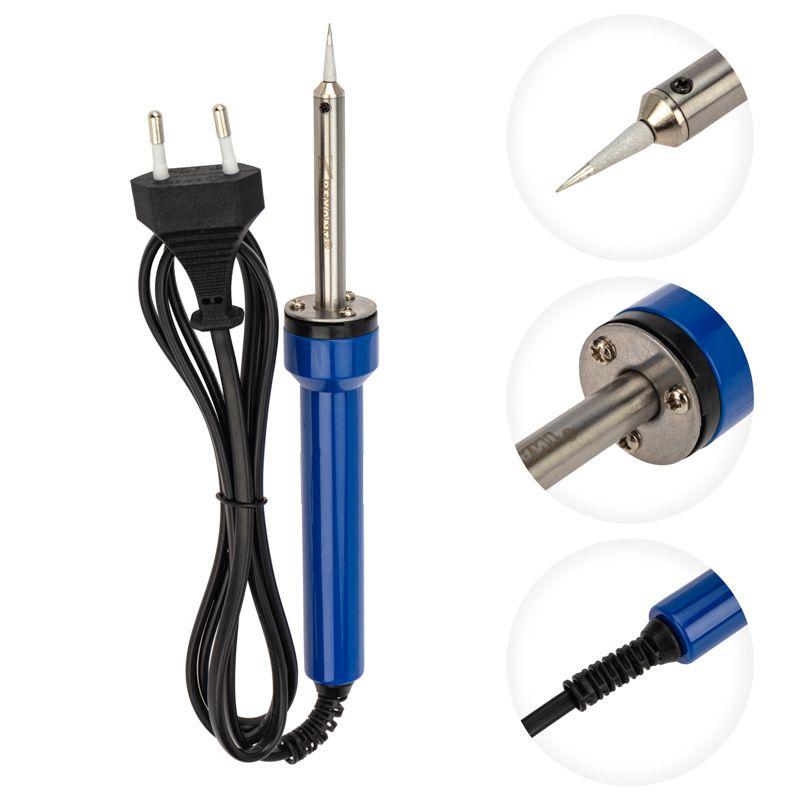 Паяльник с долговечным жалом серии ТОЧНАЯ ПАЙКА мощностью 30Вт REXANT предназначен для ручного монтажа/демонтажа электронных компонентов и других мелких деталей. Подходит как для любительского, так и для профессионального использования. Долговечное жало паяльника состоит из медьсодержащего сердечника, покрытого слоем электролитически осажденного железа, отличающегося высокой стойкостью к коррозии. При соблюдении ряда предосторожностей жало способно работать длительное время без утраты эксплуатационных свойств, а в случае необходимости его можно легко и быстро заменить (сменное жало в комплект не входит). Паяльник оснащен ударопрочной рукояткой из термостойкого пластика, которая сделает работу с инструментом легкой и приятной.