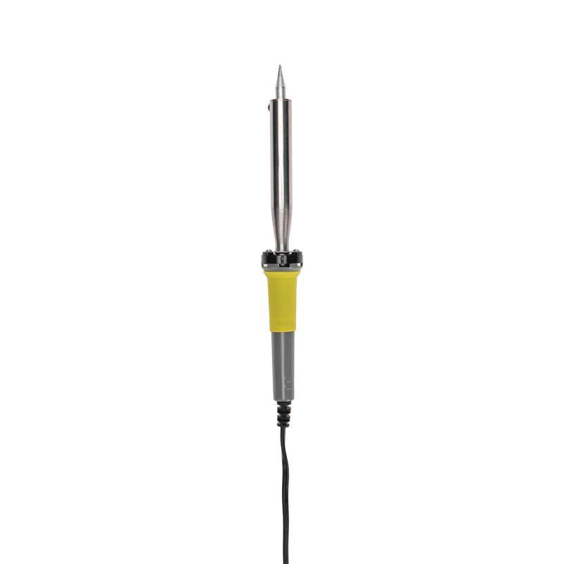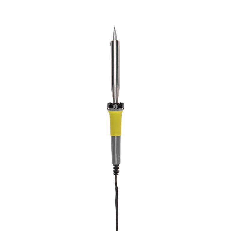 Паяльник с долговечным жалом мощностью 100Вт REXANT предназначен для ручного монтажа/демонтажа деталей среднего и крупного размера, а также для лужения. Подходит как для любительского, так и для профессионального использования. Долговечное жало паяльника состоит из медьсодержащего сердечника, покрытого слоем электролитически осажденного железа, отличающегося высокой стойкостью к коррозии. При соблюдении ряда предосторожностей жало способно работать длительное время без утраты эксплуатационных свойств, а в случае необходимости его можно легко и быстро заменить (сменное жало в комплект не входит). Нагреватель имеет керамическую трубку, которая повысит энергоэффективность прибора. Паяльник оснащен ударопрочной рукояткой из термостойкого пластика, с резиновой накладкой, которая сделает работу с инструментом легкой и приятной.