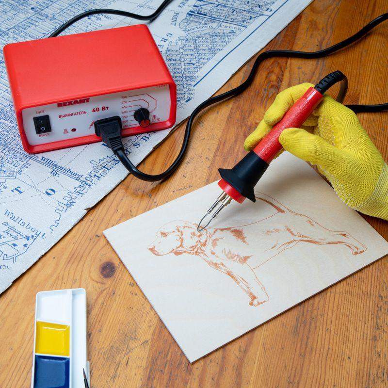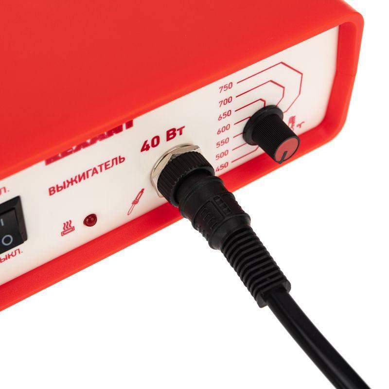 Прибор для выжигания по дереву предназначен для выжигания рисунков или орнамента. Применяется для деревянных поверхностей, а также для изделий из кожи, пробки и т.д. Удобен как для любителей пирографии, так и для профессиональных пользователей. Плавная регулировка температуры с помощью механического потенциометра (250...750?) позволяет установить подходящую температуру для выжигания. Закруглённый тип выжигательной иглы обеспечивает высокую эффективность выжигания. Конструкция держателя выжигательной иглы предотвращает нагрев поверхности рукоятки. Нагрев иглы осуществляется в течение 15-25 секунд. Удобная эргономичная рукоятка выполнена из термостойкого пластика и оснащена кольцом, которое убережет паяльное жало от соприкосновения с другими предметами, а также защитит пользователя от случайных ожогов. Технические характеристики: Температурный диапазон нагрева: 250...750 °С Напряжение питания: 230 В Питание выжигателя: 1,6 В (AC) Мощность: 40 Вт