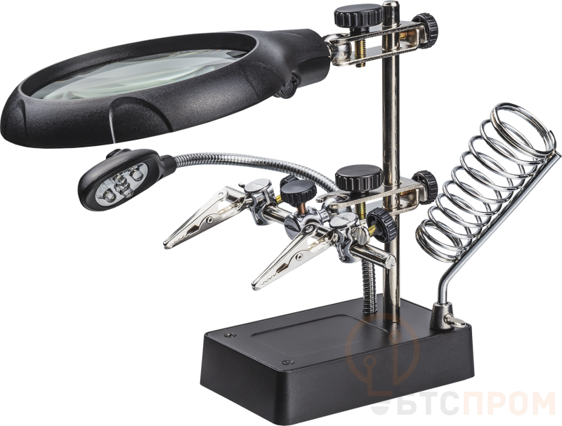 Держатель "третья рука" с лупой х2.5 подставка под паяльник LED подсветка Rexant 12-0250