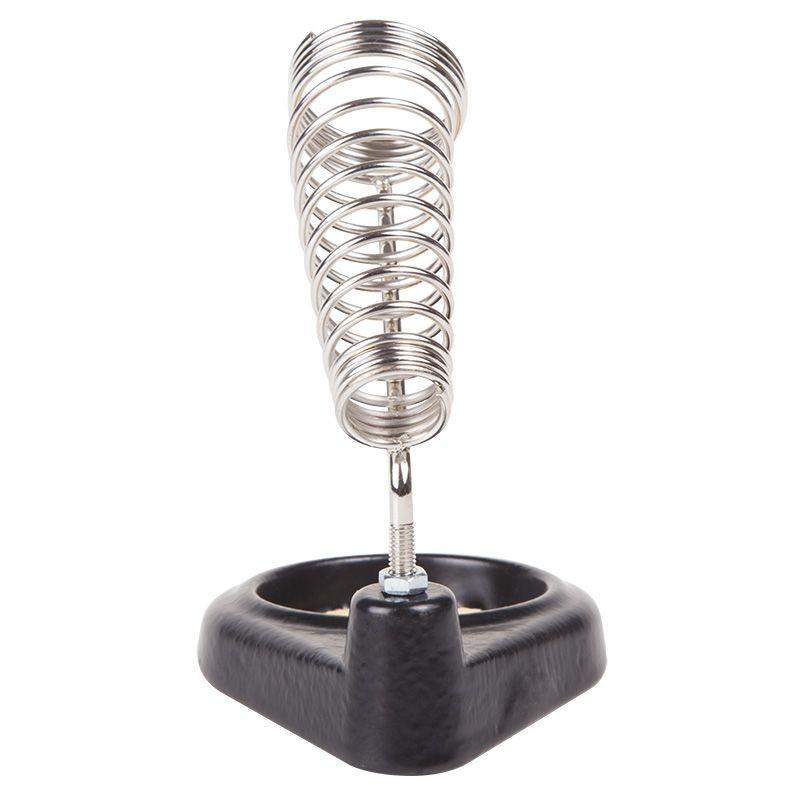 Подставка под паяльник «Чугун круглый» REXANT предназначена для безопасного хранения паяльника при нагревании, в промежутках между использованием и охлаждения. Выполнена из витой хромированной конусообразной пружины и чугунной платформы с ложементом под губку для очистки жала паяльника от остатков припоя. Губка для очистки жала паяльника в комплекте. Паяльник легко и удобно помещается в направляющую. Для возможности хорошо ознакомиться с товаром не вынимая его из упаковки, безопасного хранения и бережной транспортировки предусмотрена блистерная упаковка.