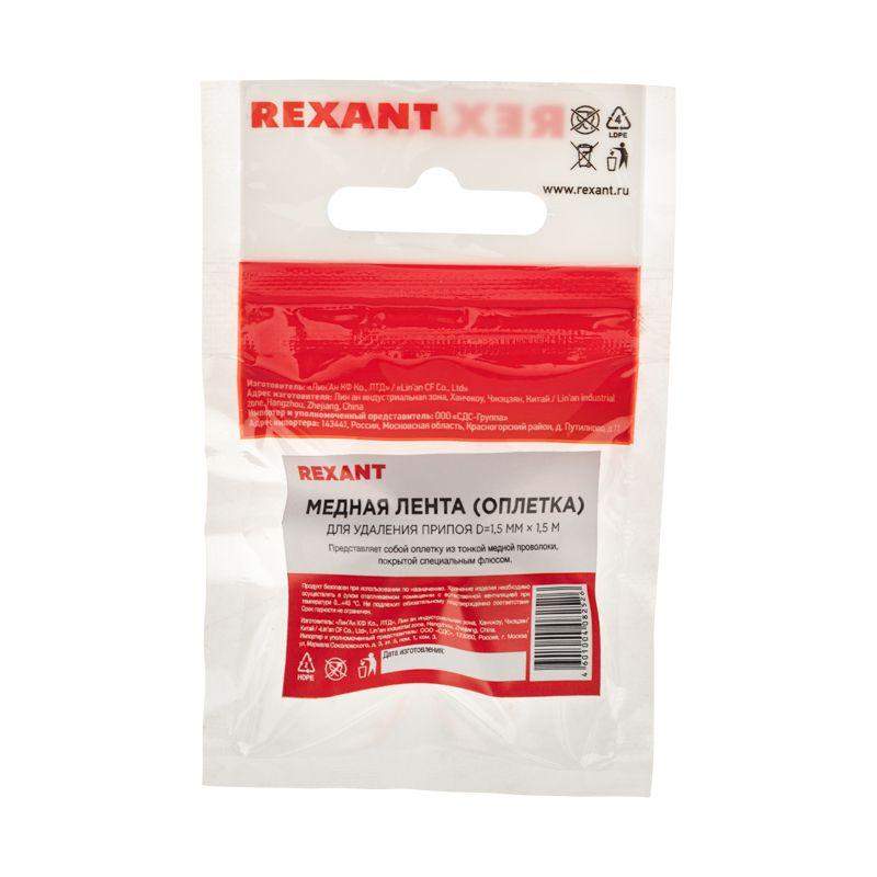 Оплетка для удаления припоя REXANT предназначена для деликатного демонтажа радиокомпонентов с печатных плат при ремонтных работах. Представляет собой оплётку из высококачественной тонкой медной проволоки, покрытой безотмывочным флюсом «RMA». Применение: - разогреть паяльником или паяльным феном контактную площадку с припоем - приложить оплетку к расплавленному припою - за счет капиллярного эффекта припой впитывается в оплетку - после естественного охлаждения отрезать насыщенную припоем часть оплетки Основные характеристики: Ширина: 1.5 мм Длина: 1.5 м После применения оплетки отпадает необходимость в чистке контактных площадок платы и контактов радиодеталей. Это самый эффективный способ удаления излишков припоя.
