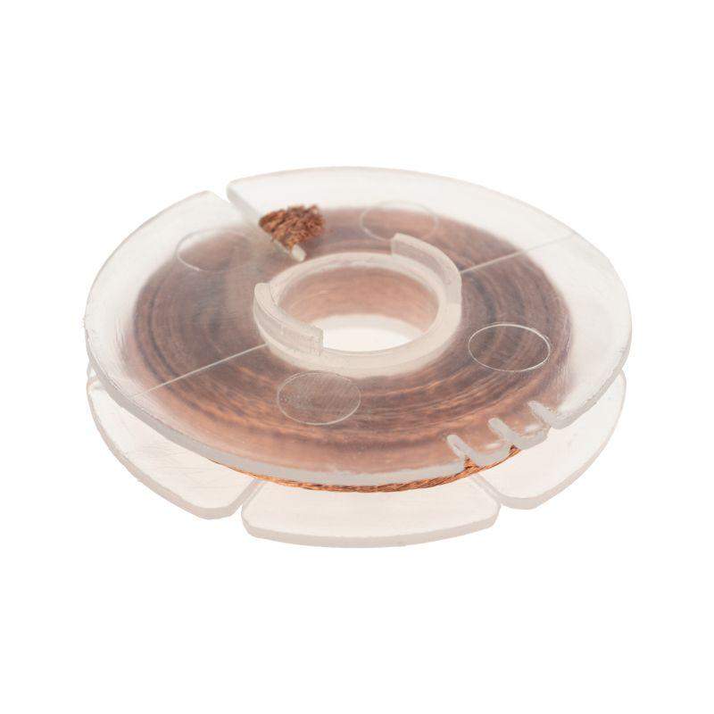 Оплетка для удаления припоя REXANT предназначена для деликатного демонтажа радиокомпонентов с печатных плат при ремонтных работах. Представляет собой оплётку из высококачественной тонкой медной проволоки, покрытой безотмывочным флюсом «RMA». Применение: - разогреть паяльником или паяльным феном контактную площадку с припоем - приложить оплетку к расплавленному припою - за счет капиллярного эффекта припой впитывается в оплетку - после естественного охлаждения отрезать насыщенную припоем часть оплетки Основные характеристики: Ширина: 2.5 мм Длина: 1.5 м После применения оплетки отпадает необходимость в чистке контактных площадок платы и контактов радиодеталей. Это самый эффективный способ удаления излишков припоя.