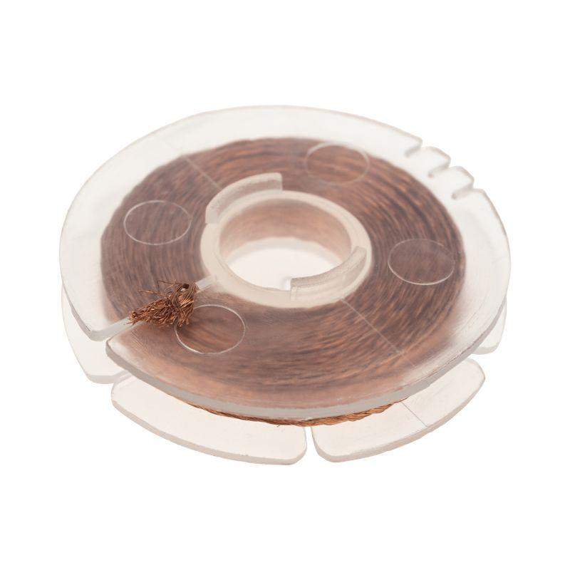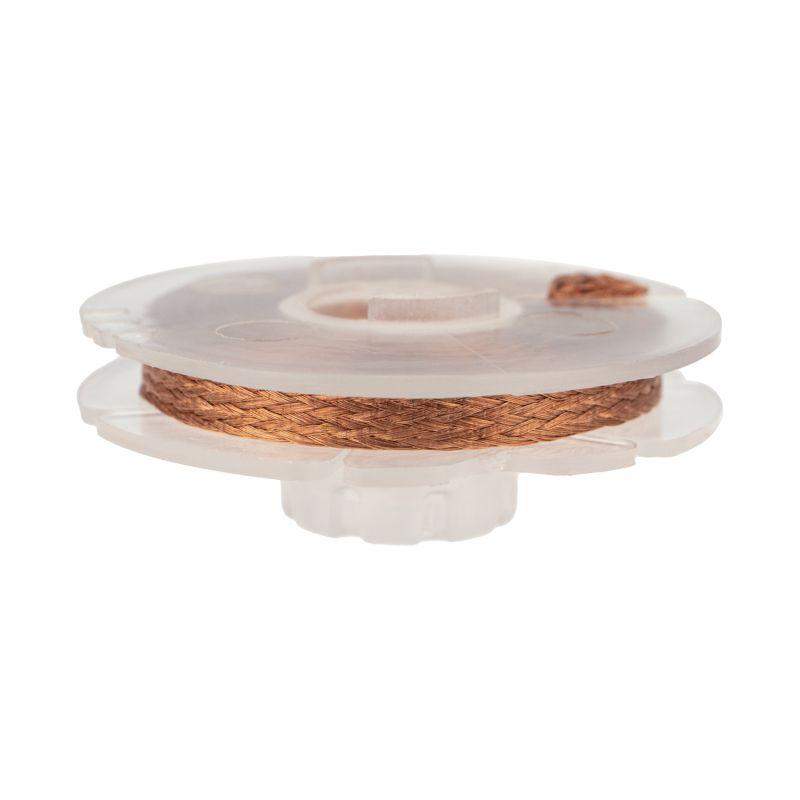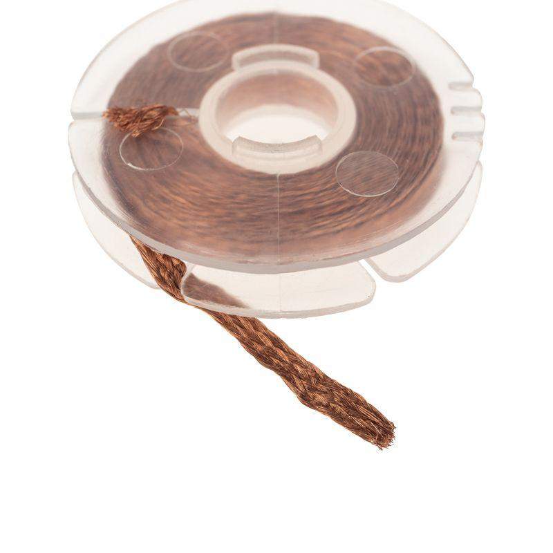 Оплетка для удаления припоя REXANT предназначена для деликатного демонтажа радиокомпонентов с печатных плат при ремонтных работах. Представляет собой оплётку из высококачественной тонкой медной проволоки, покрытой безотмывочным флюсом «RMA». Применение: - разогреть паяльником или паяльным феном контактную площадку с припоем - приложить оплетку к расплавленному припою - за счет капиллярного эффекта припой впитывается в оплетку - после естественного охлаждения отрезать насыщенную припоем часть оплетки Основные характеристики: Ширина: 3.0 мм Длина: 1.5 м После применения оплетки отпадает необходимость в чистке контактных площадок платы и контактов радиодеталей. Это самый эффективный способ удаления излишков припоя.