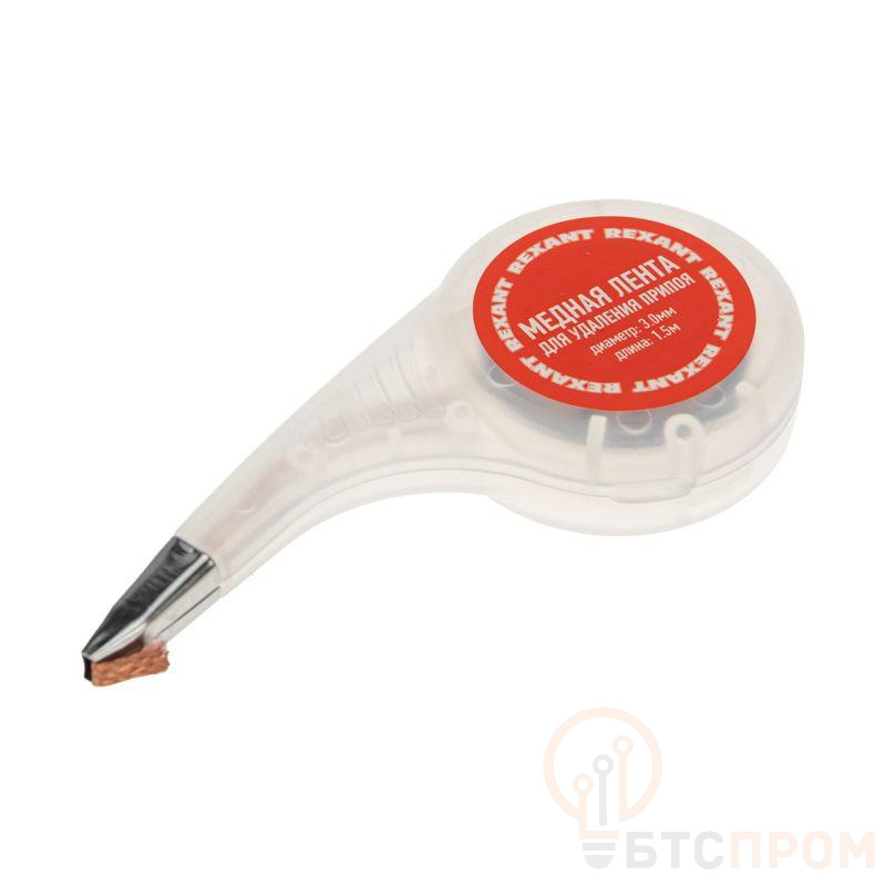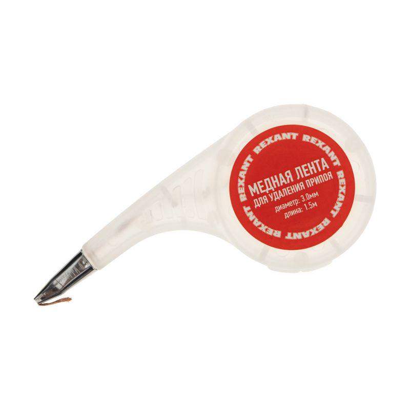 Медная лента для удаления припоя представляет собой плетёную из тонкой медной проволоки оплётку, покрытую специальным безотмывным флюсом. Такая медная лента применяется для удаления припоя с печатных плат при ремонтных работах. После её применения отпадает необходимость в чистке контактных площадок платы и контактов радиодеталей. Удобный бокс сделает использование ленты более комфортным. Порядок работы: Прислоняем медную оплетку к поверхности припоя. Разогретым паяльником размягчаем излишний припой. Мягкоплавкий металл впитывается в оплетку. Основные характеристики: Диаметр ленты: 3.0 мм Длина ленты: 1.5 м Это наиболее эффективный и часто применяемый способ удаления излишков припоя.