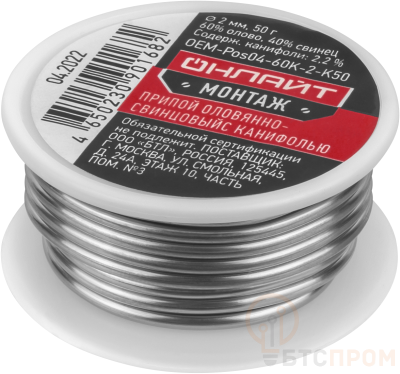 Припой 90 168 OEM-Pos04-60K-2-K50 катушка 2мм 50г ОНЛАЙТ 90168 фото в каталоге от BTSprom.by