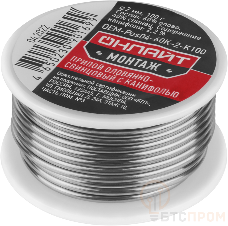 Припой 90 169 OEM-Pos04-60K-2-K100 катушка 2мм 100г ОНЛАЙТ 90169 фото в каталоге от BTSprom.by